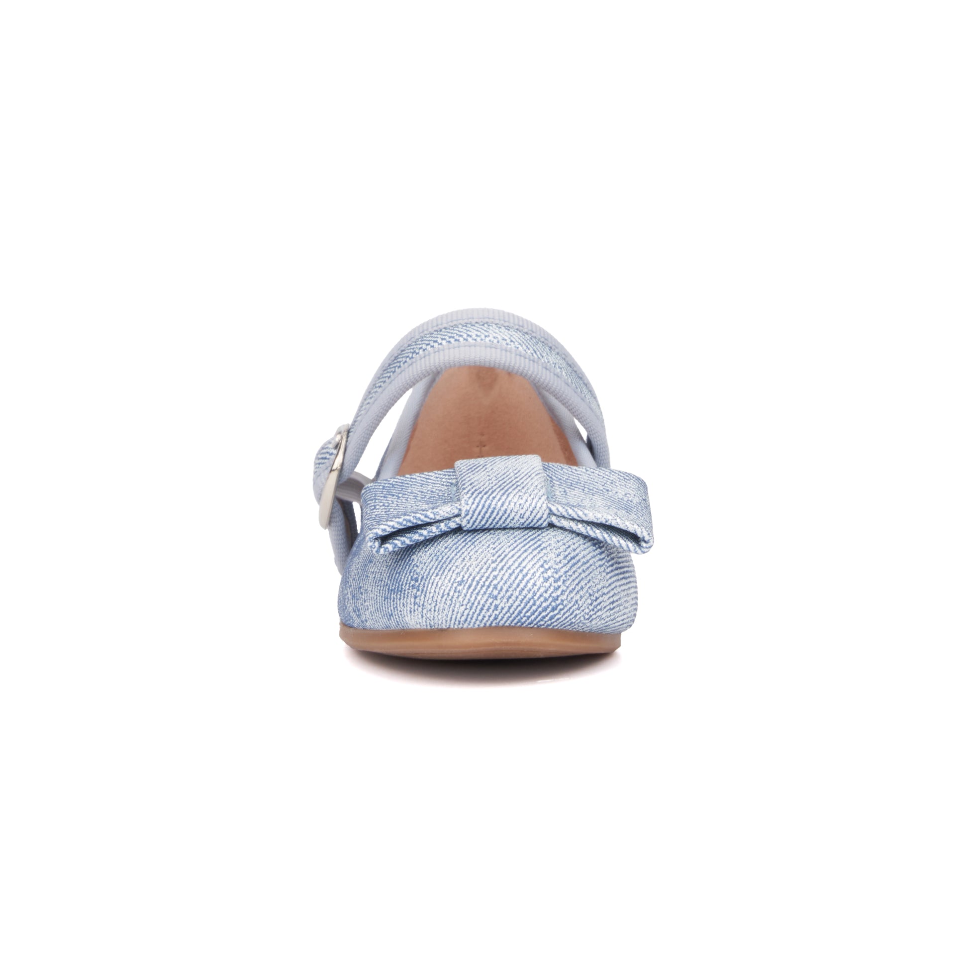The Empower Flat is a charming denim mary jane ballet flat designed for little feet with big style. Featuring a classic round toe adorned with a sweet bow detail, these shoes offer a timeless touch. Made from denim fabric, they provide all day comfort for your toddler. The easy buckle closure ensures a secure fit, while the flexible sole supports natural movement. Perfect for both playtime and special occasions, the Empower adds an adorable finishing touch to any outfit.
