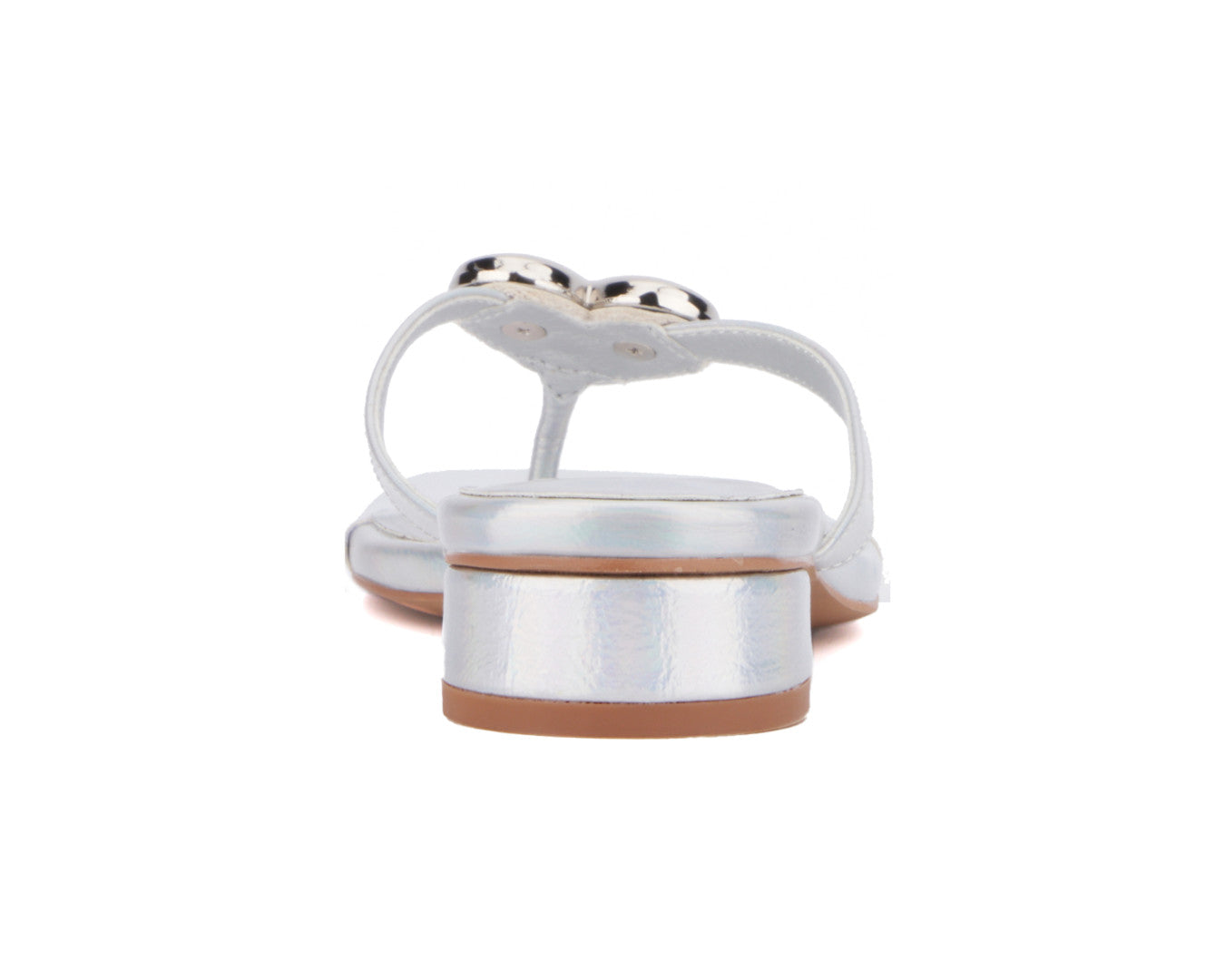 Heart-shaped hardware adds a polished accent to the Love Buzz thong sandal, With a low heel and slide silhouette, it's both comfortable and easy to wear.